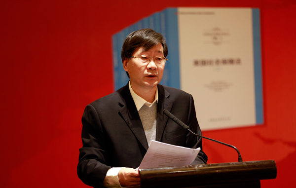 十九大刚刚闭幕,习近平总书记提出,依法行政,依法治国,意义重大。中国社科院世界社保研究中心历时八年完成这套世界社保译丛填补了一个空白,他山之石可以攻玉,这套译丛的出版也是一件大事,我们代表中国社科院向这套丛书的出版表示祝贺。首先,有请中国社科院副院长李培林同志致辞,大家欢迎。