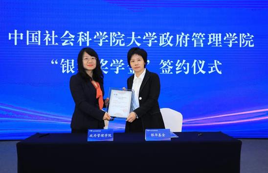 第二单元:“银华奖学金”签约仪式。银华基金管理股份有限公司总经理助理龚飒与中国社会科学院大学政府管理学院副院长皇娟进行签约,设立“银华奖学金”。
